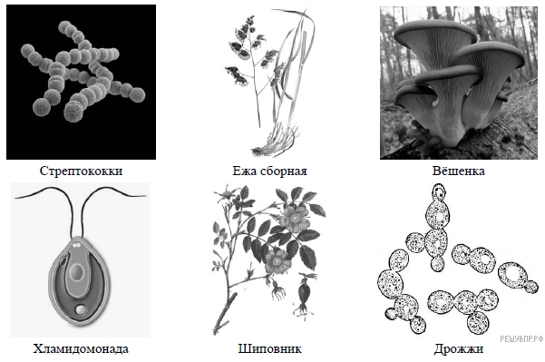 Рассмотрите изображения шести организмов. Предложите основание, согласно которому их можно разделить на две группы по три представителя в каждой.