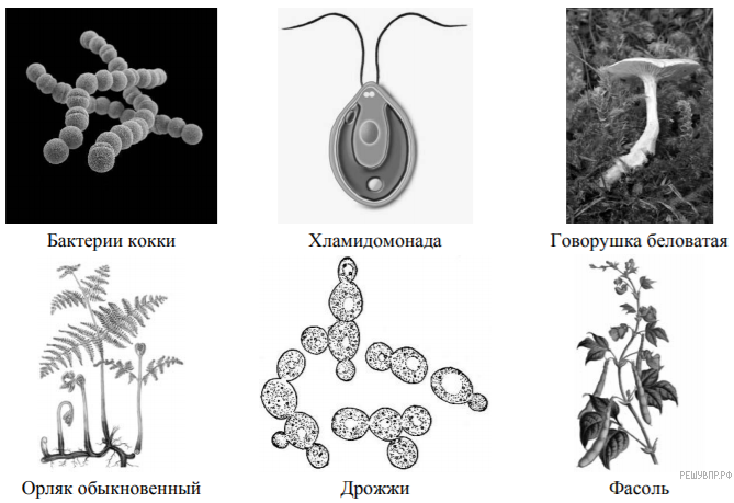 Рассмотрите изображения шести организмов. Предложите основание, согласно которому их можно разделить на две группы по три представителя в каждой.