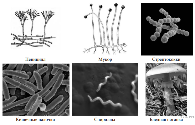 Рассмотрите изображения шести организмов. Предложите основание, согласно которому их можно разделить на две группы — по три представителя в каждой.