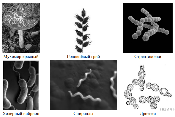 Рассмотрите изображения шести организмов. Предложите основание, согласно которому их можно разделить на две группы — по три представителя в каждой.